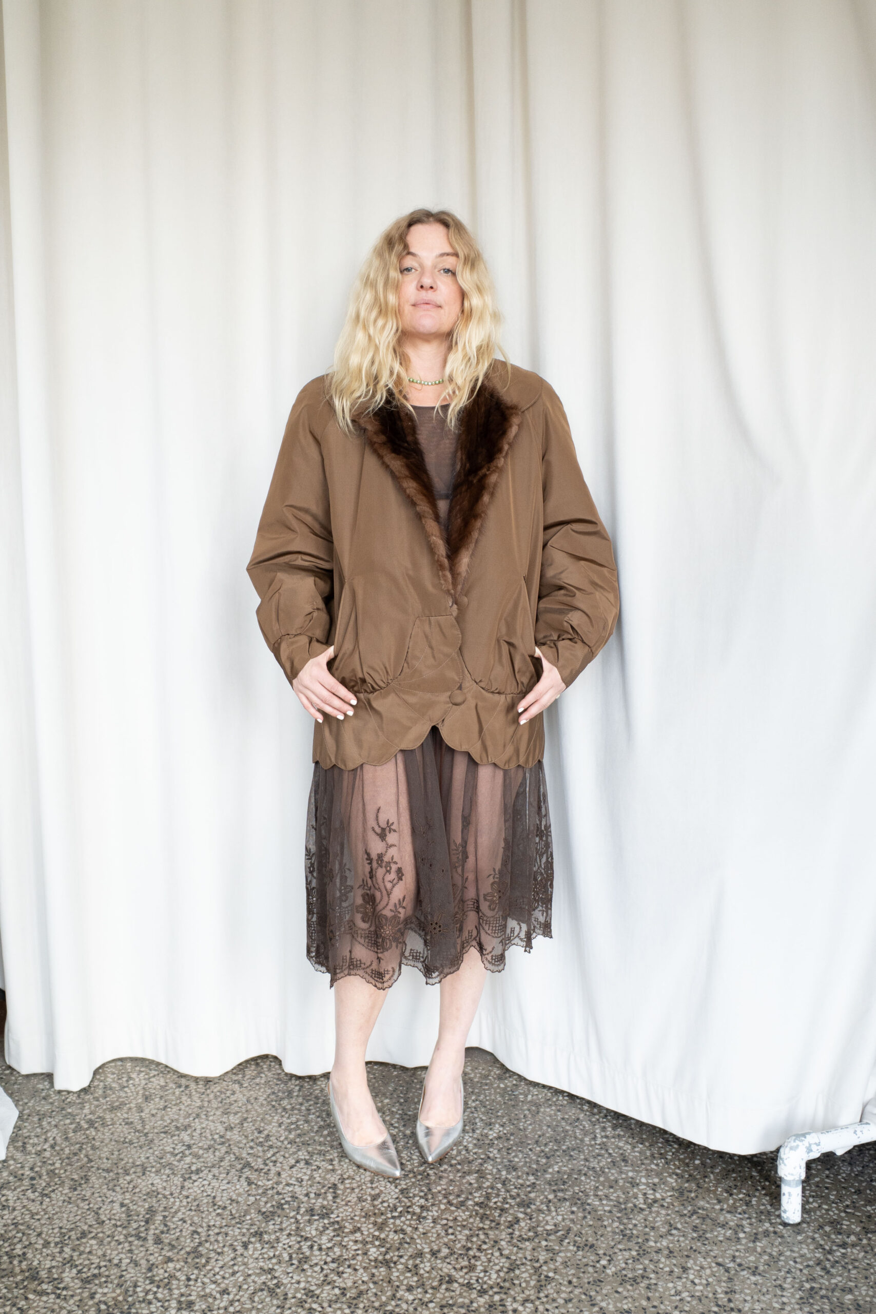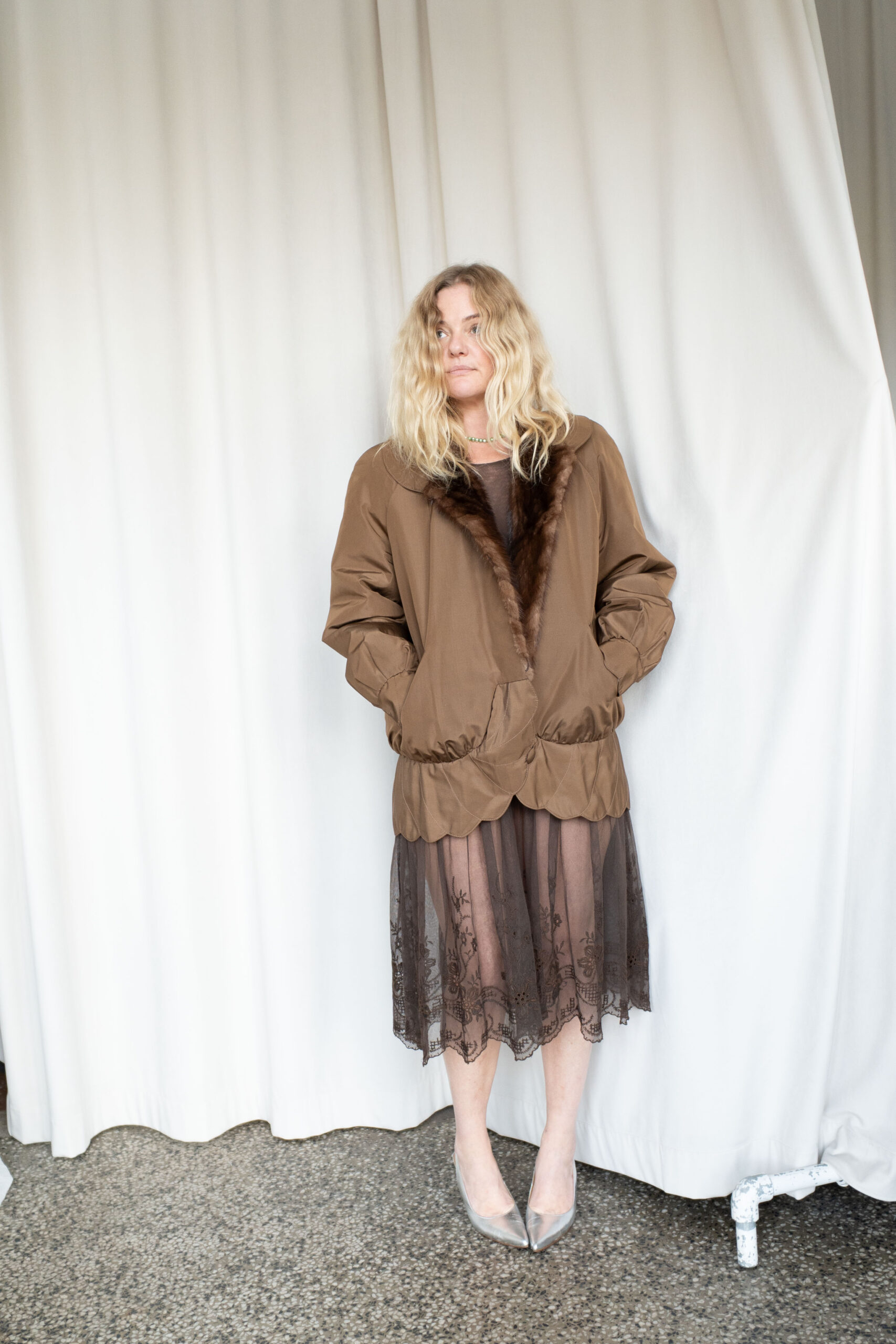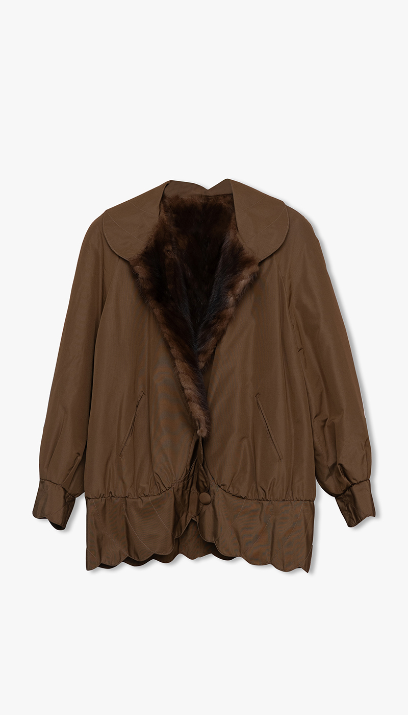 En luksuriøs jakke foret helt med myk minkpels, som gir både varme og en eksklusiv følelse. Jakken har vakre sømdetaljer og elegant kamskjellskanting som løfter designet, og gjør den til et tidløst statement-plagg. Perfekt over både kjoler og hverdagsantrekk når du vil kombinere komfort med sofistikert stil.