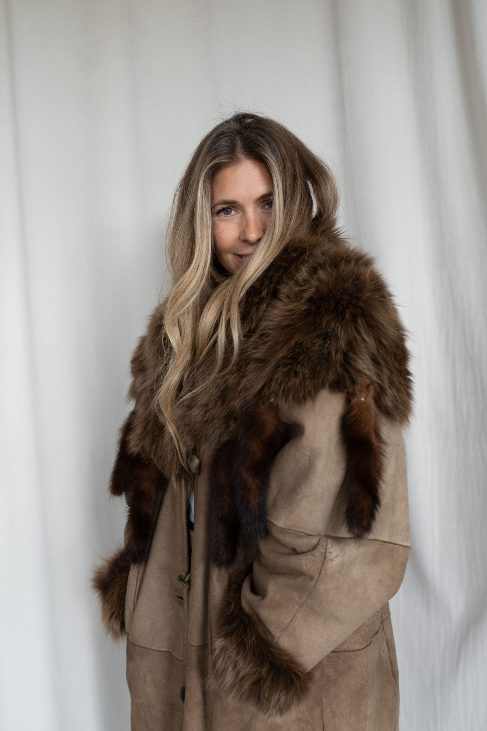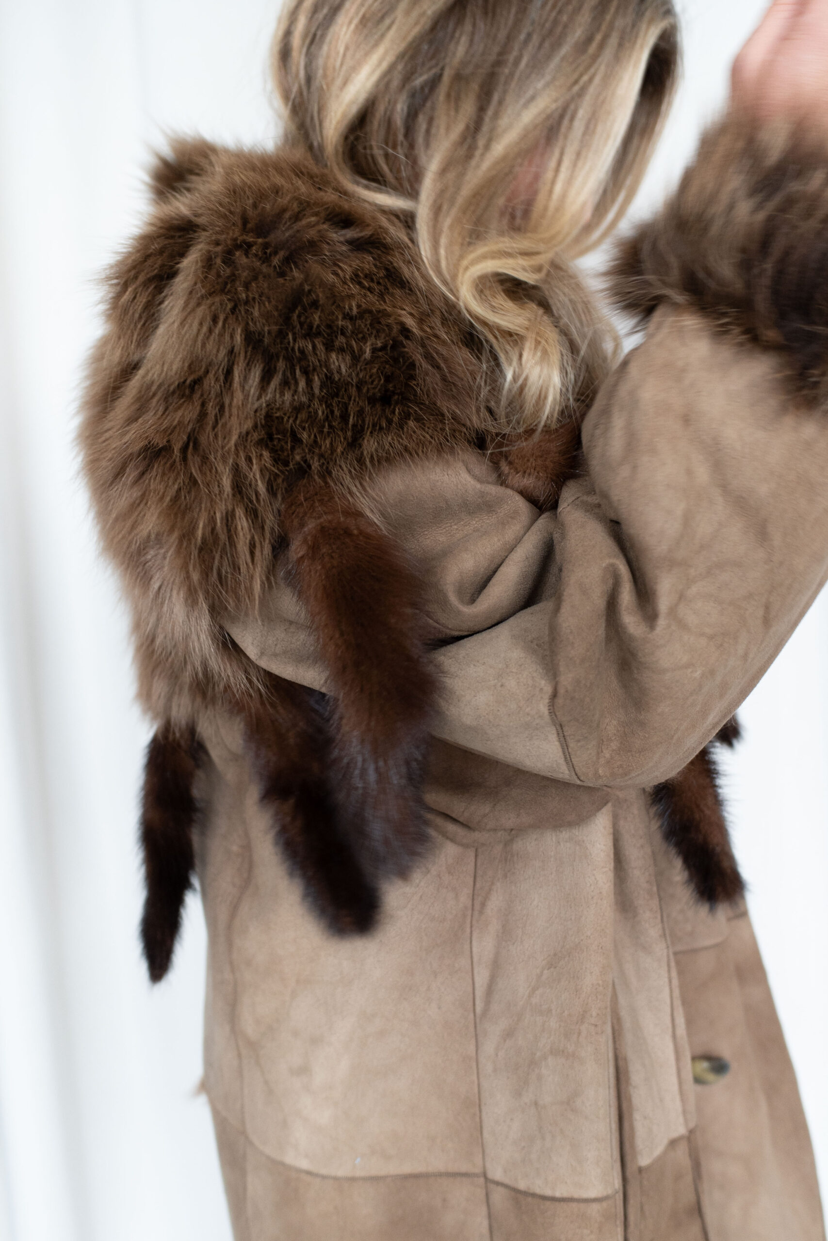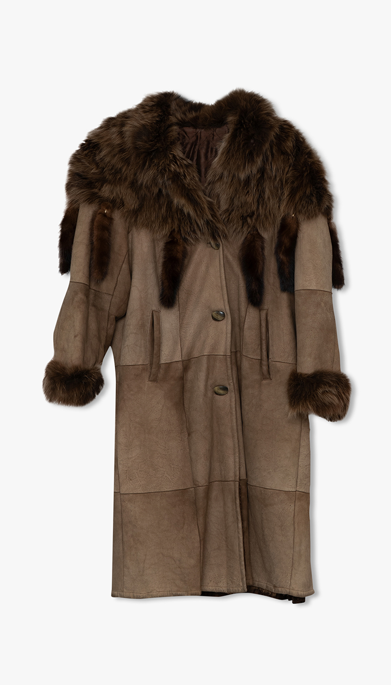 Brun pelskåpe med minkpelsdetaljer