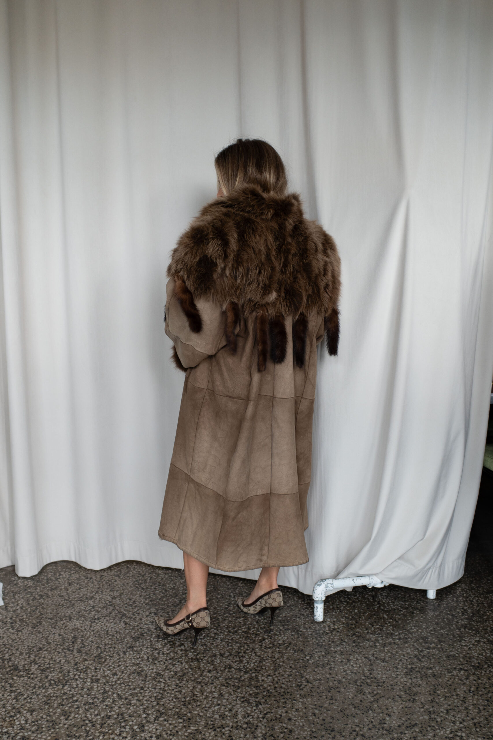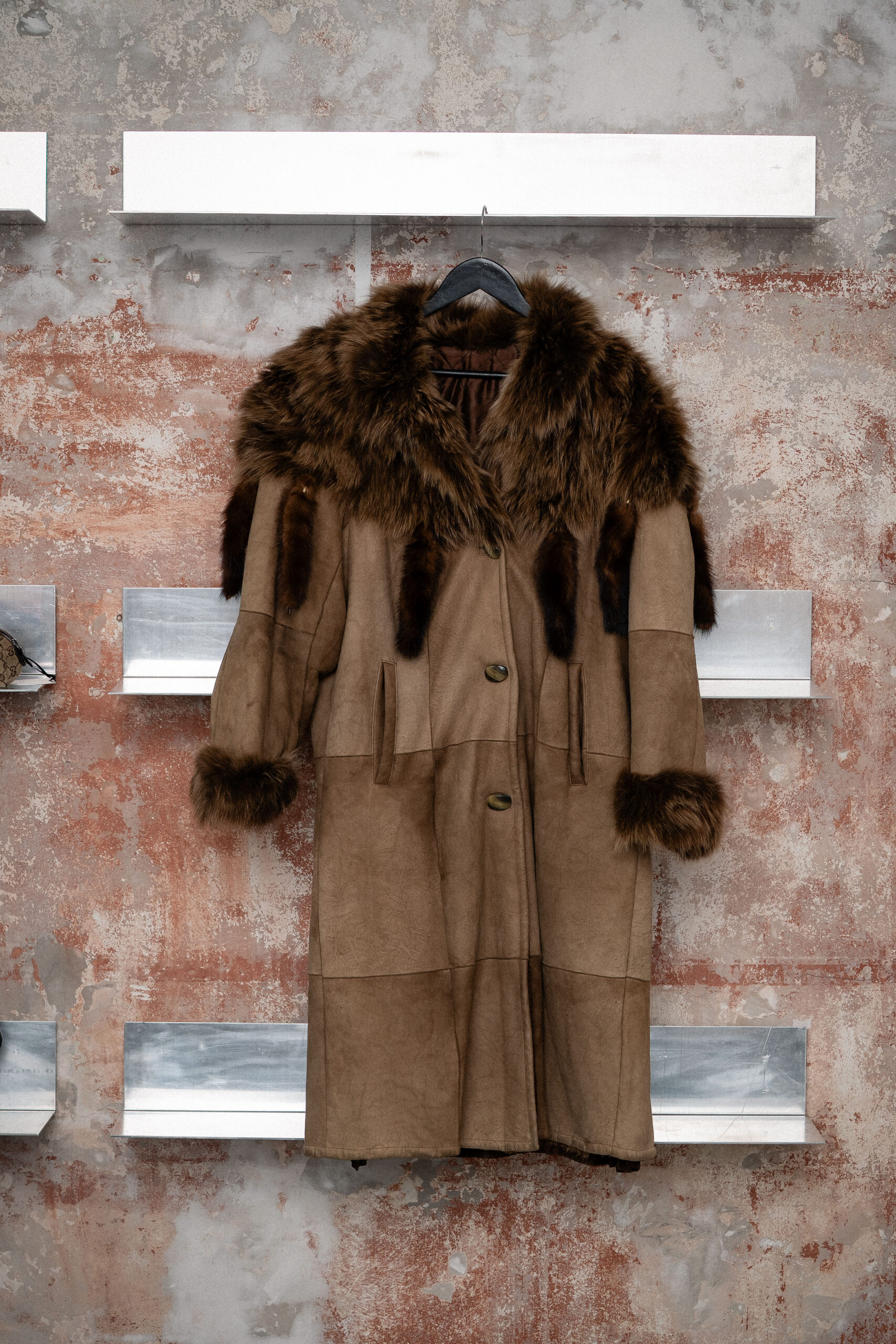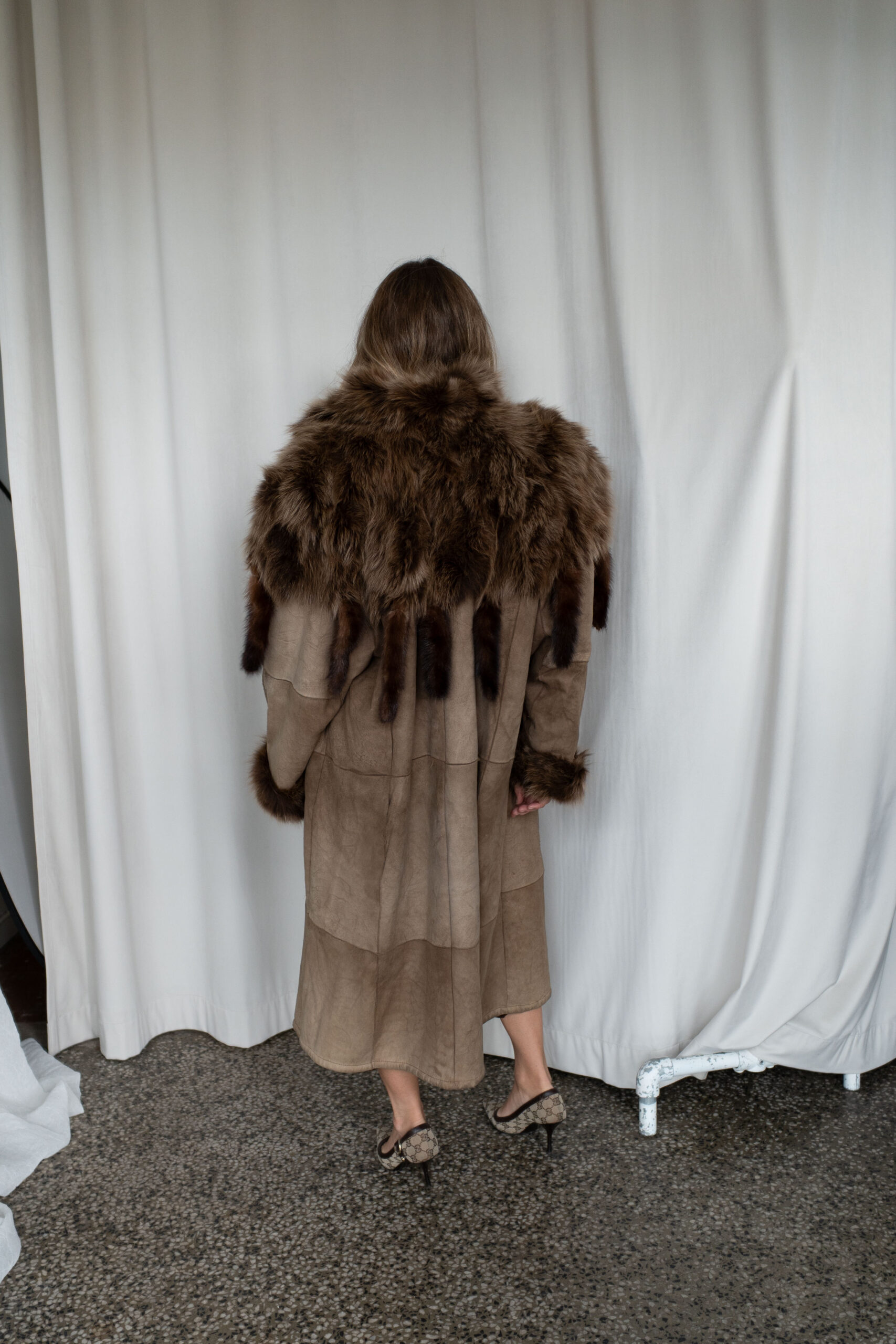 Brun pelskåpe med minkpelsdetaljer