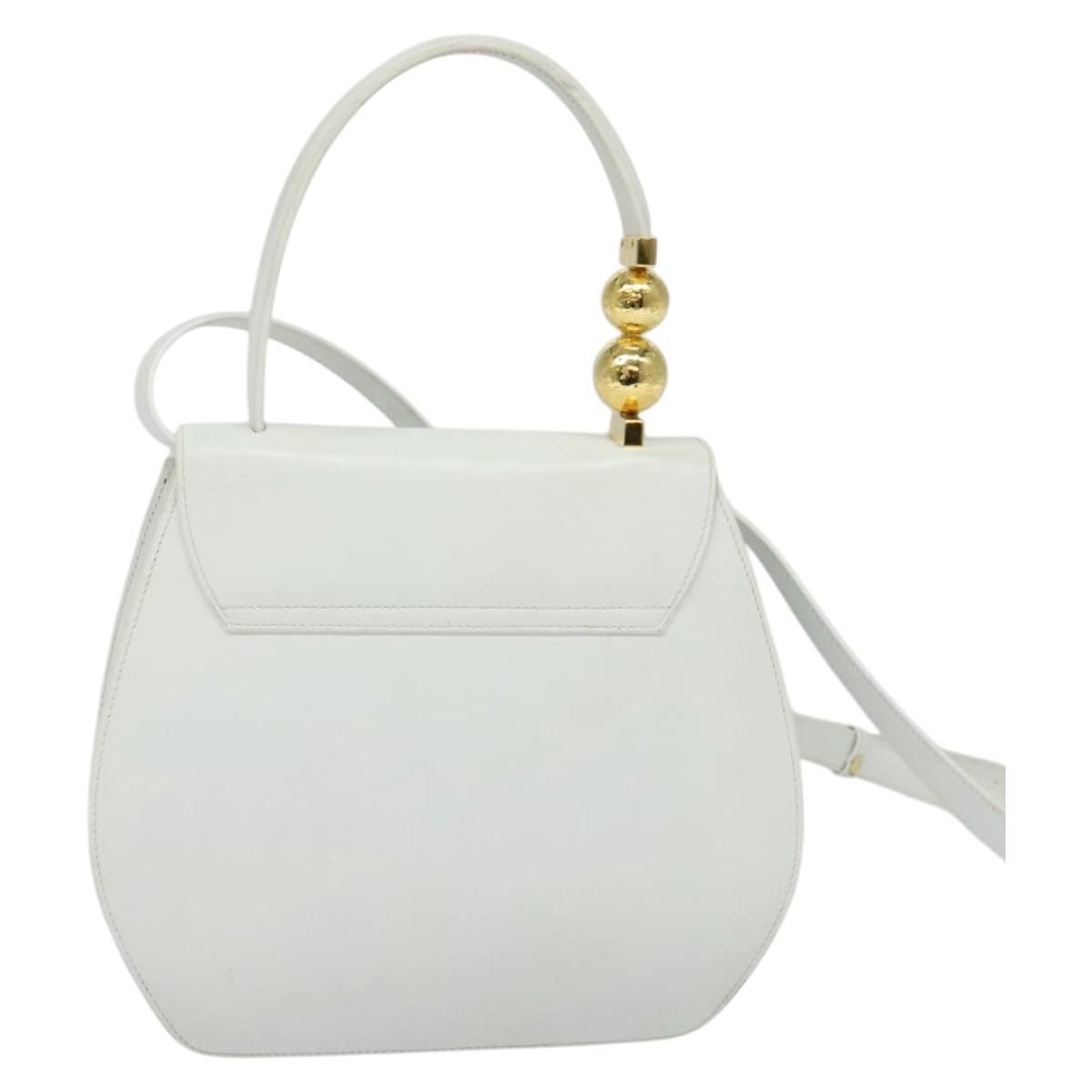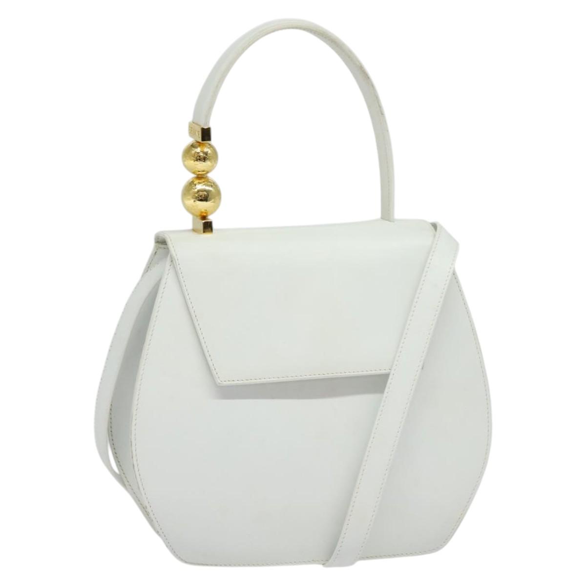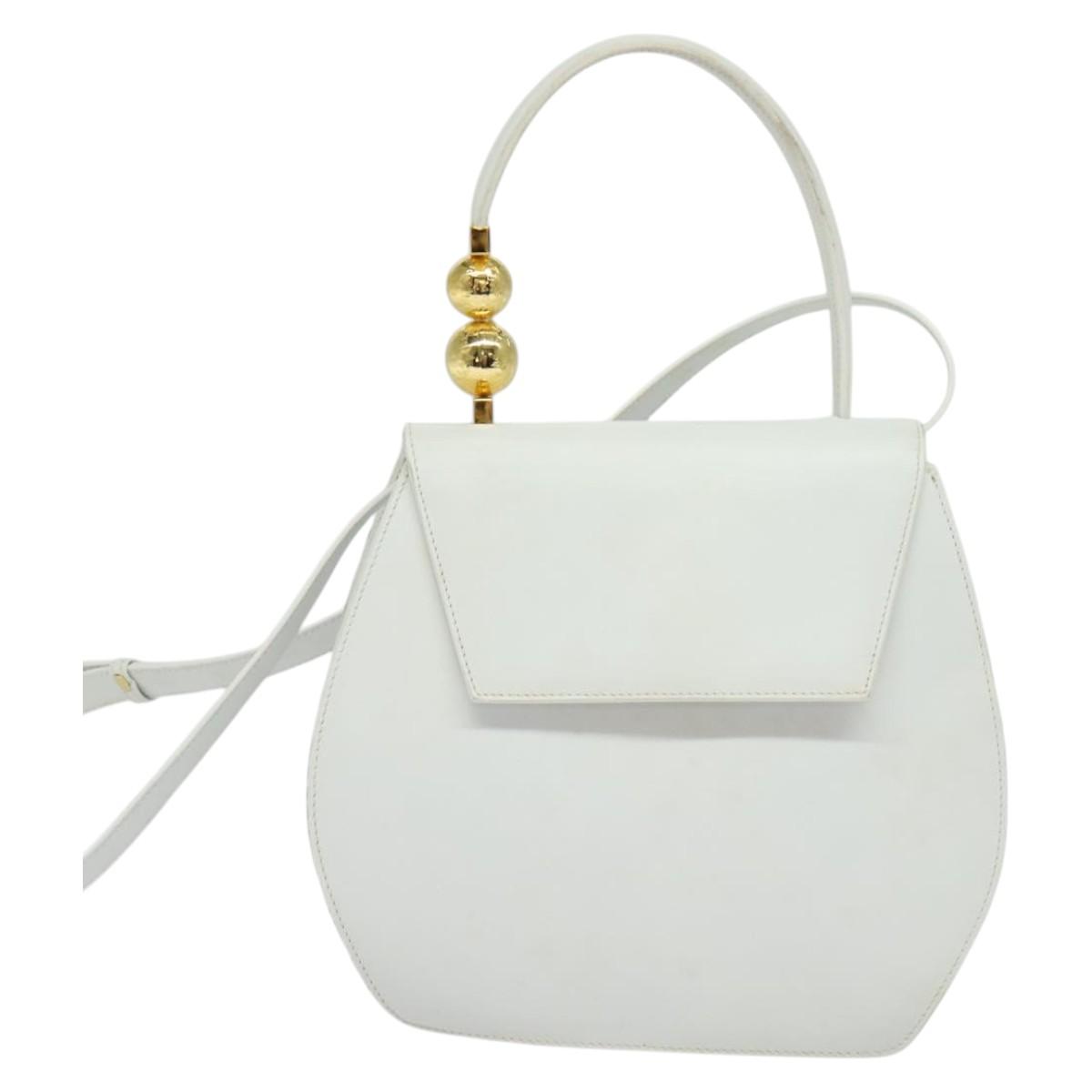 Denne vesken er laget i Italia av førsteklasses glatt hvitt skinn, og har en unik avrundet silhuett og et karakteristisk håndtak pyntet med to blanke gullkuler. Designet balanserer klassisk sofistikasjon og moderne kunstnerisk uttrykk — perfekt for deg som ønsker et samlerobjekt eller et statement-accessory.