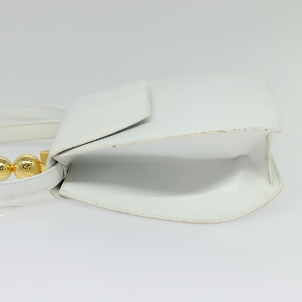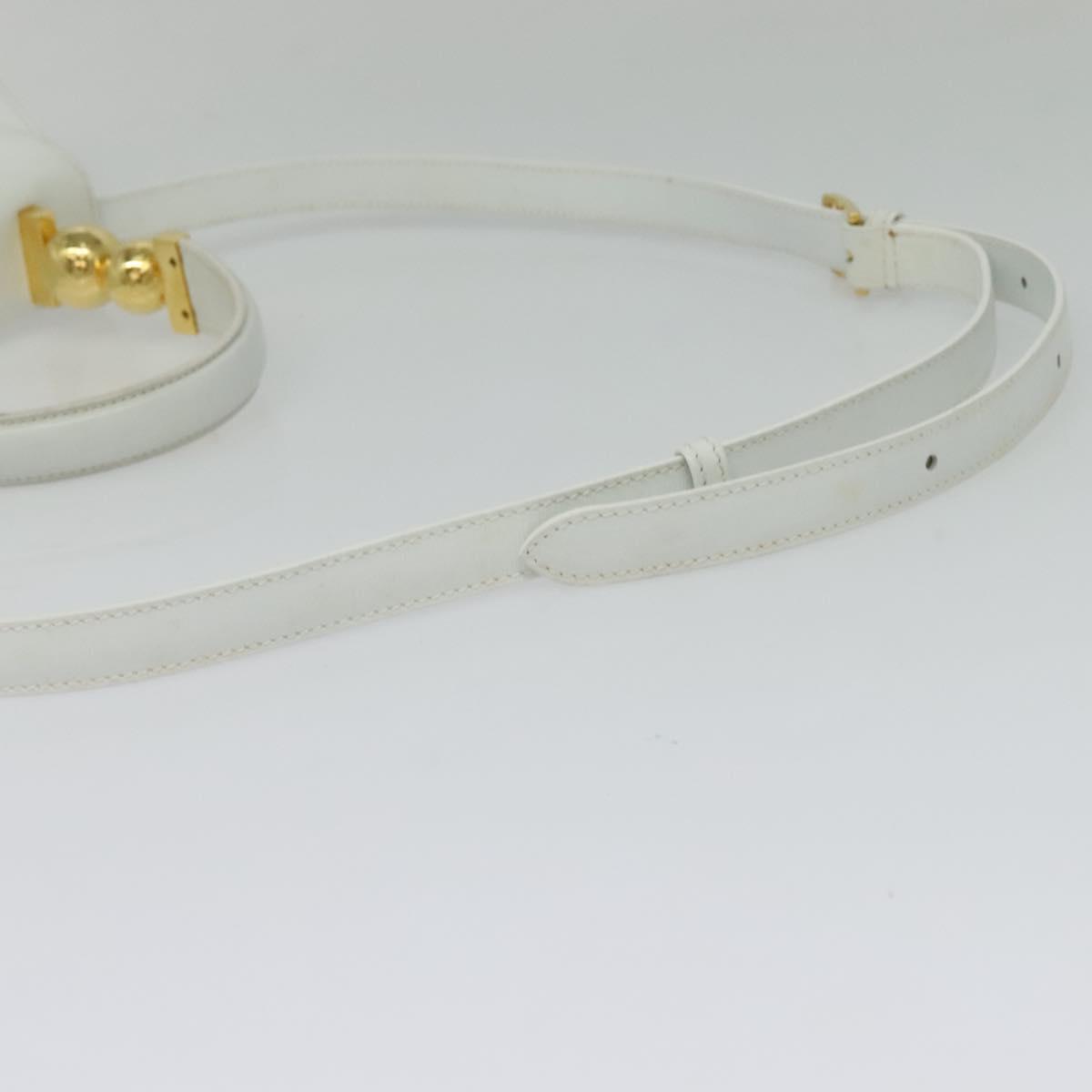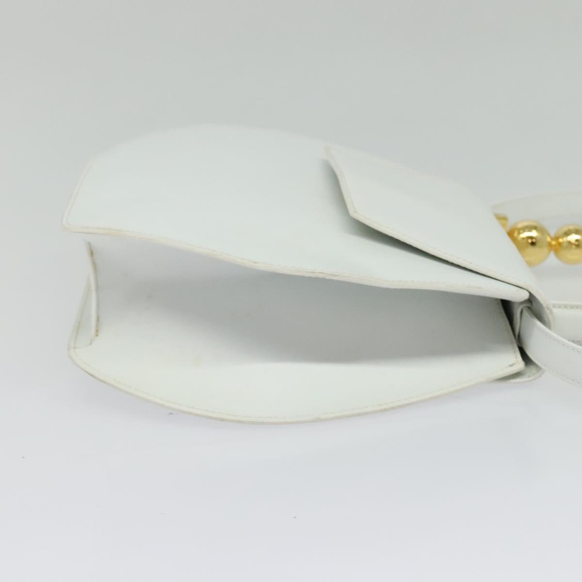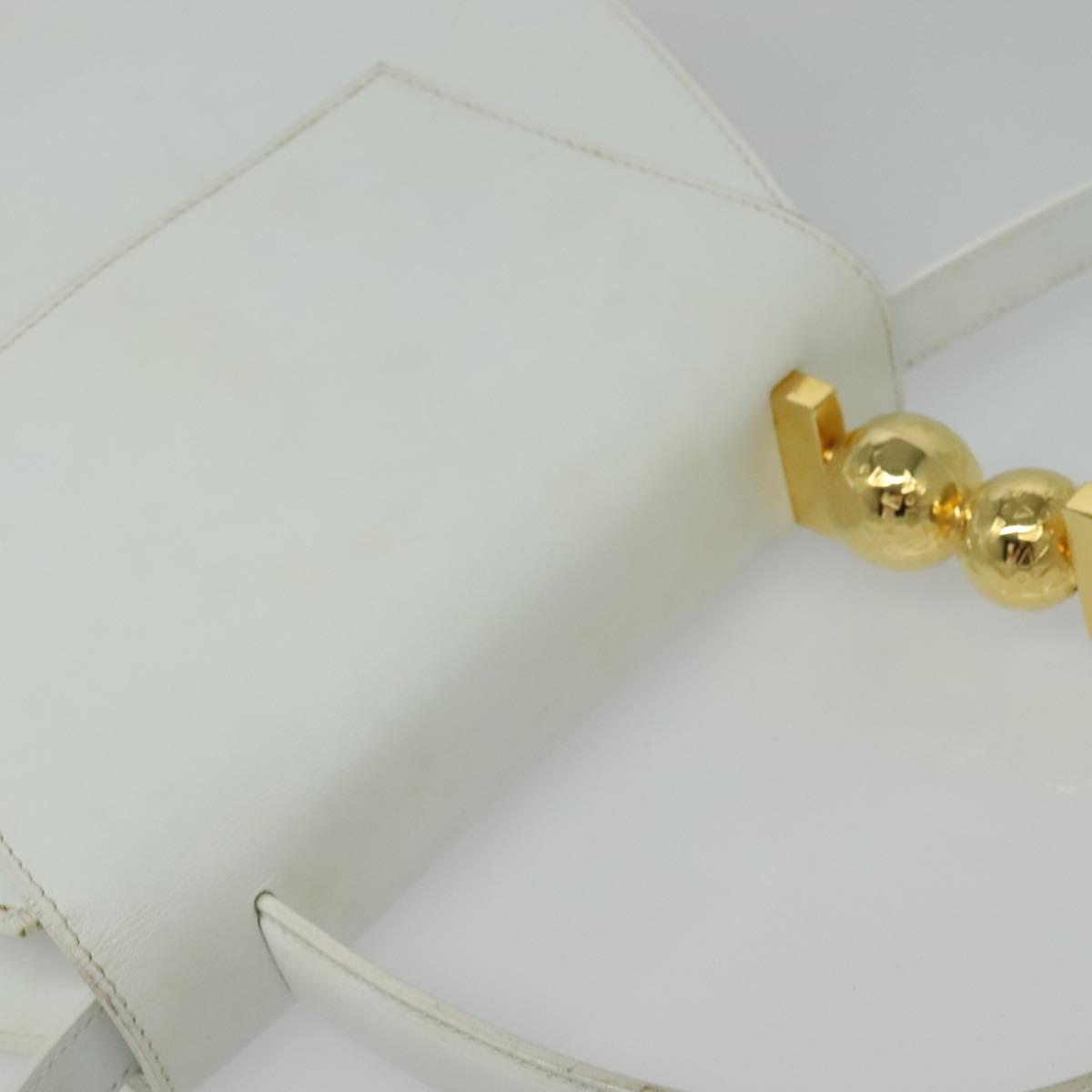 Denne vesken er laget i Italia av førsteklasses glatt hvitt skinn, og har en unik avrundet silhuett og et karakteristisk håndtak pyntet med to blanke gullkuler. Designet balanserer klassisk sofistikasjon og moderne kunstnerisk uttrykk — perfekt for deg som ønsker et samlerobjekt eller et statement-accessory.