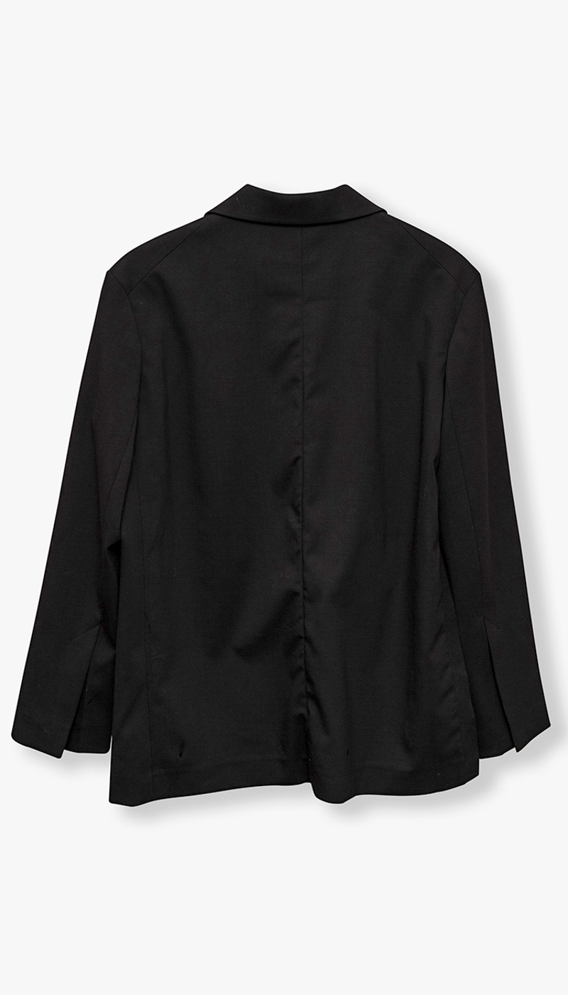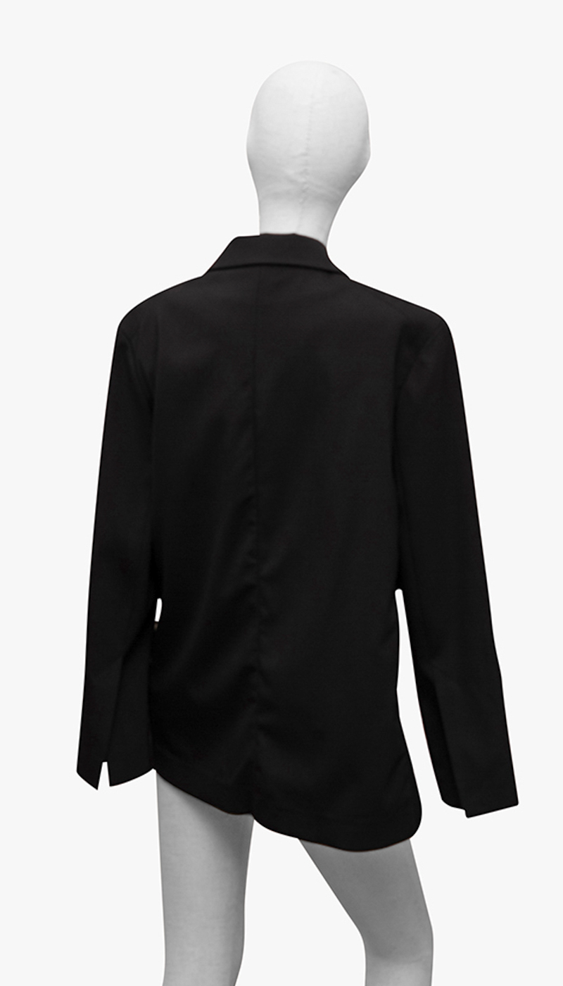 Tailoring with a twist, this Jacquemus black blazer redefines classic structure through a sculptural, contemporary lens. Cut in a relaxed silhouette, it features sharp lapels and a single-breasted front, elevated by an unexpected draped panel and tie detail that wraps across the body.