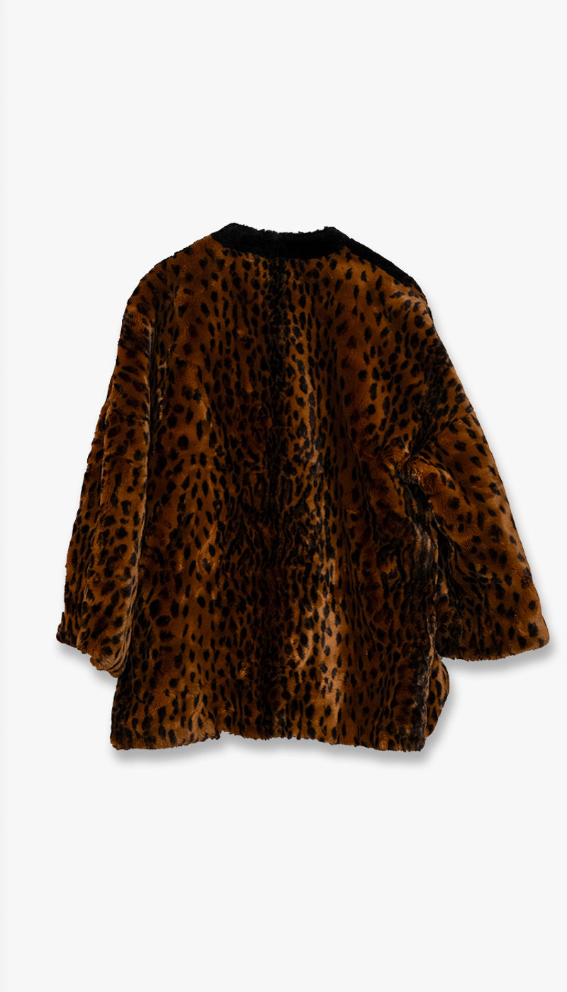 Kort fuskepels i leopard, super myk og varm med kul knapp.