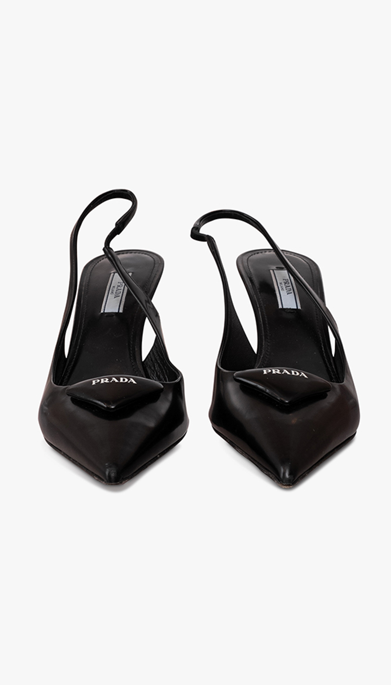 Prada Black Slingback Pumps – Pointed Toe Leather Heels