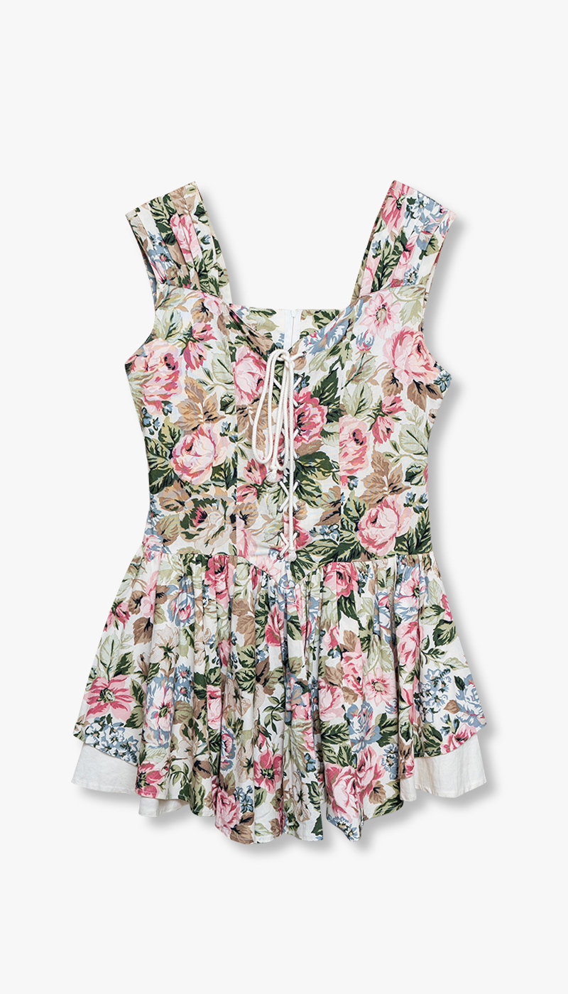 Vintage kjole – romantisk blomsterprint med snøring i ryggen